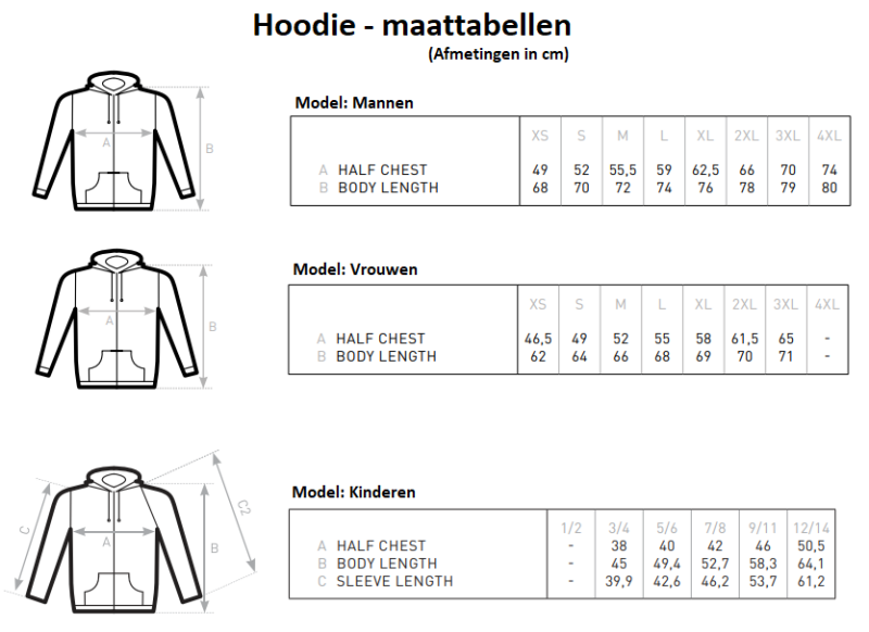Prijs per hoodie KINDERMATEN: 54 € incl. btw.